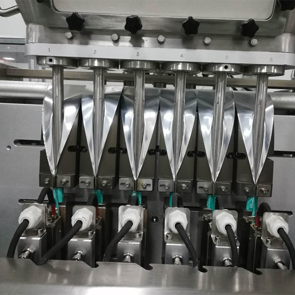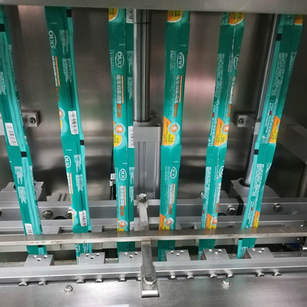 多列粉末包裝機是專門用來包裝條狀粉末類型物料的,采用螺桿計量裝置自動進行物料的計量,每一列數(shù)對應(yīng)一個螺桿計量裝置,也就是說10列粉末包裝機就有10個螺桿計量機。另外這臺多列咖啡粉包裝機還配置了一個吸塵器,一般情況下多列機包裝粉末的時候,在下料的過程中會有揚塵的現(xiàn)象,不除去揚塵,會導(dǎo)致封口不密封,封口不美觀,這個吸塵器的作用就是把揚塵吸掉,保證密封性,增加封口的美觀度。
