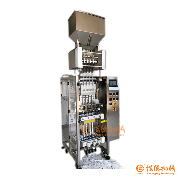 該款多列顆粒包裝機(jī)是在普通款式包裝機(jī)基礎(chǔ)上自行研制開(kāi)發(fā)的顆粒包裝設(shè)備,可以配置真空上料機(jī)進(jìn)行物料的自動(dòng)輸送,真空上料機(jī)自動(dòng)吸取物料,輸送到機(jī)器物料斗里面,然后通過(guò)量杯或者小型電子稱對(duì)物料進(jìn)行計(jì)量稱重,進(jìn)行下料、制袋、封口、成品輸出等環(huán)節(jié)進(jìn)行物料的包裝。