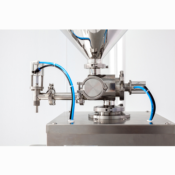 適用于日用化學(xué)、食品、醫(yī)藥、化工等行業(yè)的膏體、液體的定量灌裝。該機(jī)結(jié)構(gòu)合理,性能可靠,定量準(zhǔn)確。動(dòng)力部分采用氣動(dòng)結(jié)構(gòu),外殼由不銹鋼制成,與物料接觸部分均采用304不銹鋼制成,故具有防銹防腐蝕耐酸堿的性能?;钊删垡蚁┎牧现瞥桑瑲鈩?dòng)部分均采用進(jìn)口元件,符合GMP要求。用戶可在一定范圍內(nèi)任意調(diào)節(jié)灌裝量和灌裝速度。