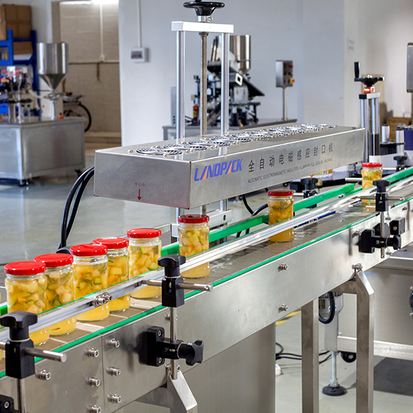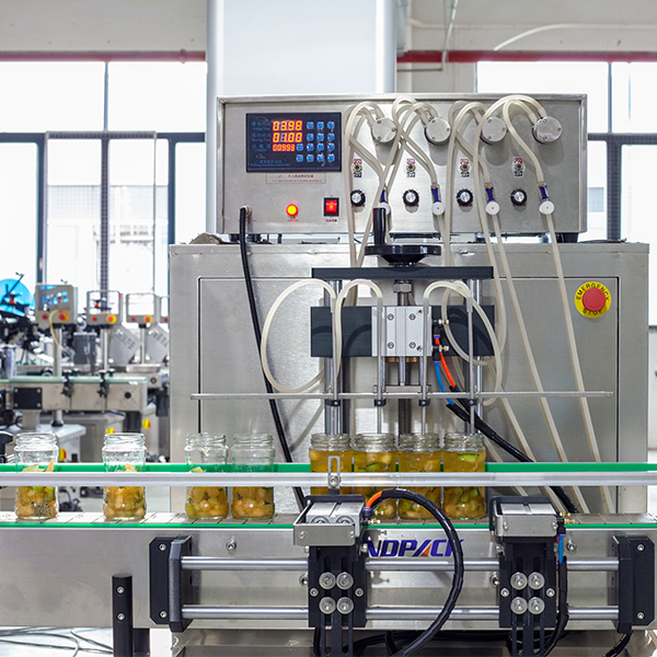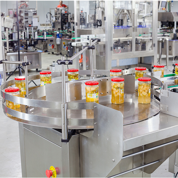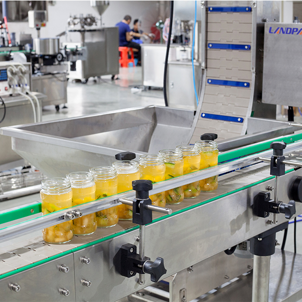 食品生產(chǎn)線主要工序:理瓶、電子稱稱重計(jì)量、灌裝下料、灌裝汁水、自動上蓋、自動旋蓋、鋁箔封口、貼標(biāo)簽、收瓶。適用于水果罐頭、腌蘿卜、泡椒、腌黃瓜、腌蒜、嫩姜、七彩椒、腌制食品等帶汁水的食物。