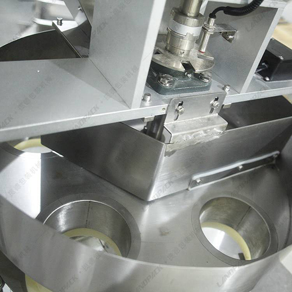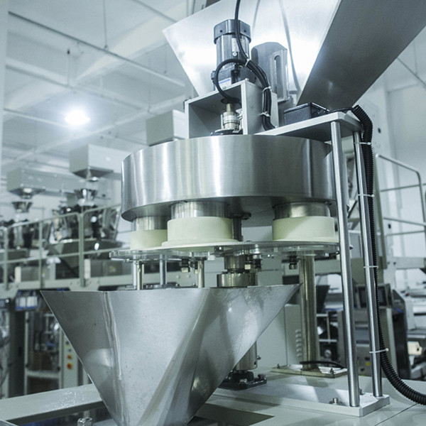該機(jī)使用了轉(zhuǎn)盤(pán)定量包裝系統(tǒng),配合Z型物料提升機(jī)使用,工作人員只要講物料倒入提升機(jī)的振動(dòng)儲(chǔ)料斗當(dāng)中,然后輸送到三角型裝置的料斗當(dāng)中,伺服電機(jī)控制量杯進(jìn)行物料的計(jì)量,通過(guò)旋轉(zhuǎn)裝置把量杯當(dāng)中的物料倒入袋裝當(dāng)中,進(jìn)行封口輸出等一系列工作完成自動(dòng)包裝。