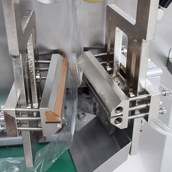 4、定制象鼻式金屬制袋器,通過定制尺寸的杯型包裝袋成型器,可以更好的使卷膜到包裝的塑型,成型便捷。采用獨立PID溫控系統(tǒng)控制熱壓中封區(qū),加熱雙邊封口,對包裝產(chǎn)品背部進行密封封口,保證了封口的我密封性高。