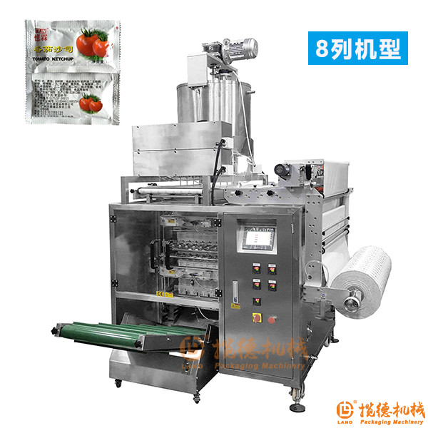 番茄醬包裝機(jī)是用于包裝四邊封口醬類物料的全自動多列包裝機(jī),該機(jī)分為4列、6列、8列等多種類型,采用液體活塞泵或者蠕動泵進(jìn)行物料的計量和灌注。如果需要10或者跟多,可以根據(jù)用戶的需求進(jìn)行定制開發(fā)。