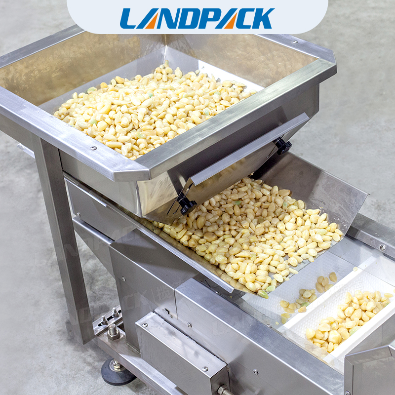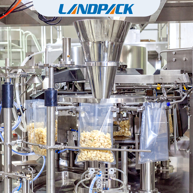 給袋式真空包裝機(jī)代替了手工包裝,操作人員只要將做好的一個(gè)一個(gè)的袋子,一次性將幾百個(gè)袋子放在設(shè)備的取袋部,設(shè)備機(jī)械手會(huì)自動(dòng)的取袋、打印日期、開袋、給計(jì)量裝置信號(hào)計(jì)量并落料、封口、輸出。