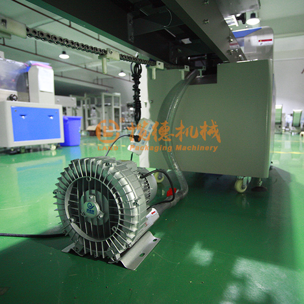 通過(guò)下圖可以看到抽氣式口罩包裝機(jī)的一個(gè)效果,采用旋渦氣泵,目的是把袋子里的空氣抽取掉,使整個(gè)口罩產(chǎn)品沒(méi)有那么膨脹鼓起來(lái)。這樣也利于裝箱和疊放