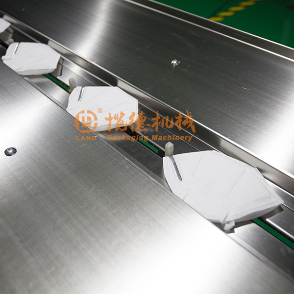該機(jī)的操作流程是:操作人員手動(dòng)把需要包裝的一次性口罩、平面口罩、N95口罩、KN95口罩放入托盤傳送帶當(dāng)中,然后傳送帶把口罩輸送到包裝機(jī)里面,然后配合漩渦氣泵在袋子封口的時(shí)候進(jìn)行抽取氣體,經(jīng)過(guò)卷膜、制袋、封口等一系列環(huán)節(jié)完成包裝過(guò)程